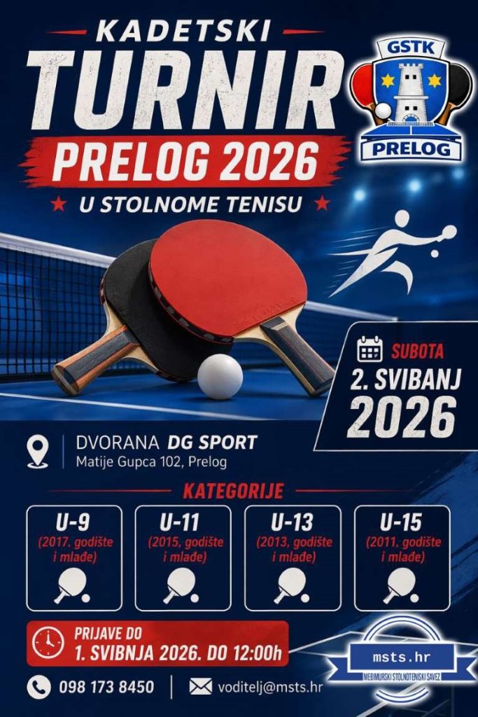 Turnir će se igrati u subotu 2 svibanj 2026. godine u sportskoj dvorani SRC DG Sport, Ulica Matije Gupca 102 u Prelogu s početkom u 9:00 sati.