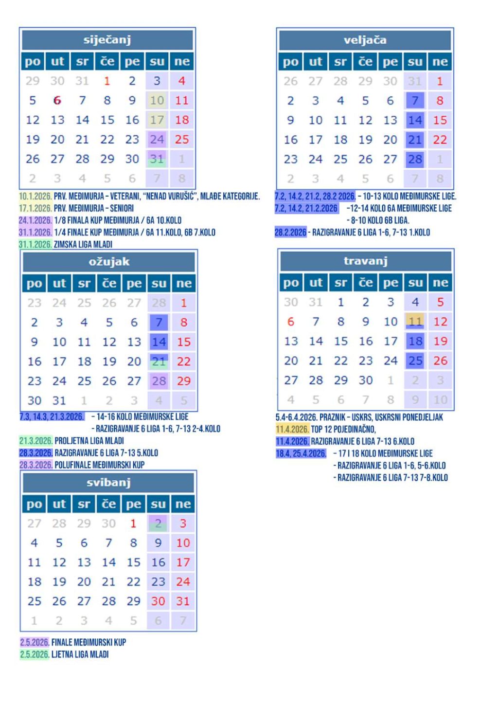 7.2, 14.2, 21.2, 28.2 2026. – 10-13 kolo Međimurske lige.